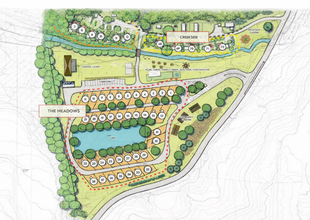 Simple Life, a leading developer of tiny home communities, introduces you to The Meadows in Flat Rock, North Carolina. It is the perfect location to park your tiny towable, RV, and fifth wheels long term.